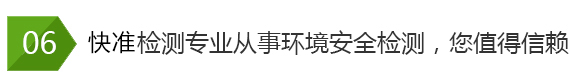 快準(zhǔn)環(huán)境檢測公司技術(shù)力量雄厚,有一套完整的檢測服務(wù)流程,公司注重服務(wù)質(zhì)量, 公司嚴(yán)把質(zhì)量關(guān)向社會承諾:檢測公正、科學(xué)、高效、準(zhǔn)確!空氣檢測、水質(zhì)檢 測、土壤固廢檢測、輻射放射檢測、噪聲振動檢測、環(huán)保認(rèn)證檢測、裝修材料 檢測就找山東快準(zhǔn)環(huán)境檢測技術(shù)有限公司!